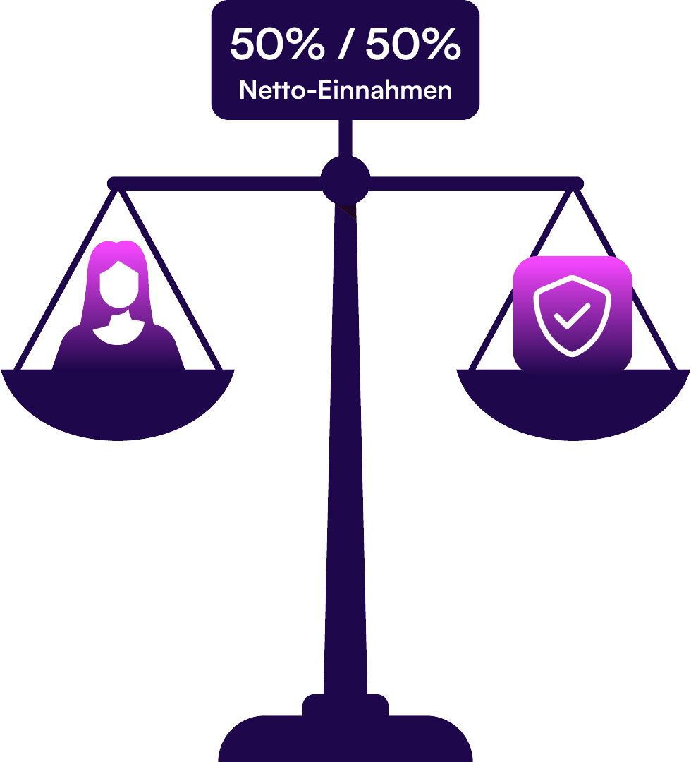 Weil du den Wert bringst. Ohne dich gäbe es den Kunden nicht – du hast das Vertrauen, du schaffst die Reichweite. Statt Geld in anonyme Werbung zu stecken, investieren wir direkt in dich. Du erhältst 50 % der Netto-Einnahmen pro Abo, das über deinen Promo-Code zustande kommt – monatlich, solange das Abo läuft. Das ist für uns nicht nur fair – sondern Teil unseres Prinzips: Wachstum durch Vertrauen. Und durch echte Partnerschaften mit Creators wie dir.